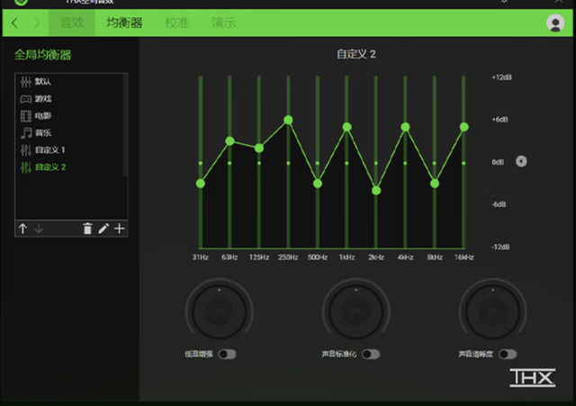 战锤狂鲨V3支持THX Spatial Audio空间音效软件,可自由调节EQ均衡器,尤其是在游戏的场景中,用户通过细节的设定,帮助用户听到游戏中的脚步声或者枪战游戏中的声音方向,所以整体来说还是非常实用。